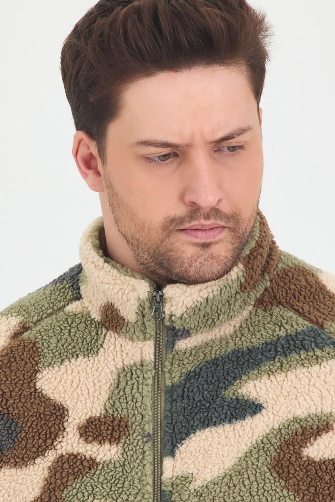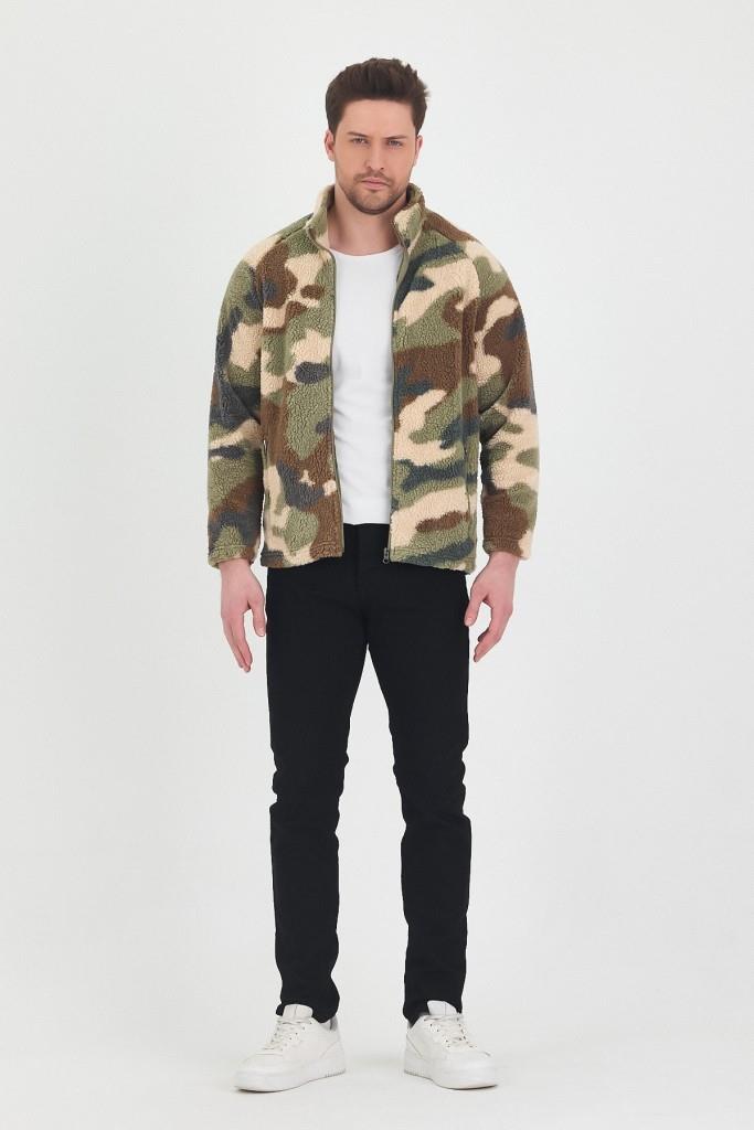 Haki Erkek Polar Ceket Kamuflaj Desenli (MEC15042025)